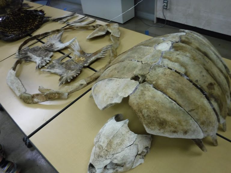 カメの骨格や,高知でとれた魚,カメなどが水槽で展示されていました。