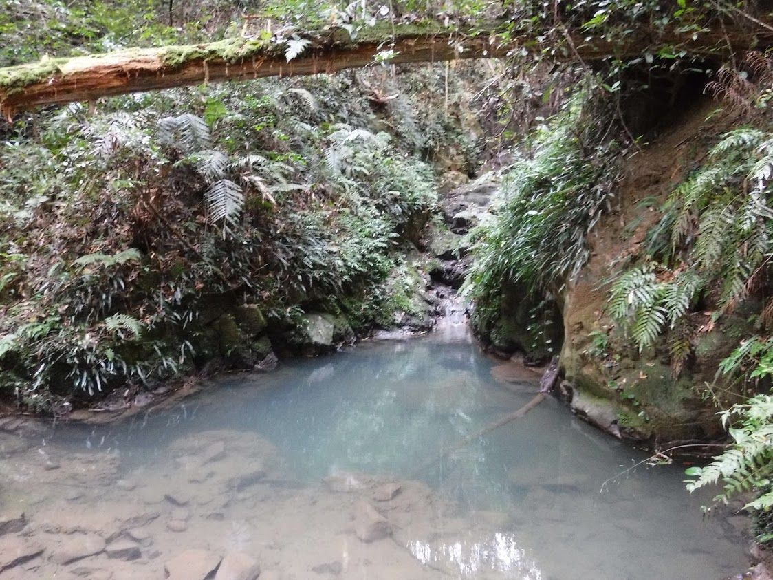 じめじめしたところを川の飛び石を何度も横切りながら滝まで到着。