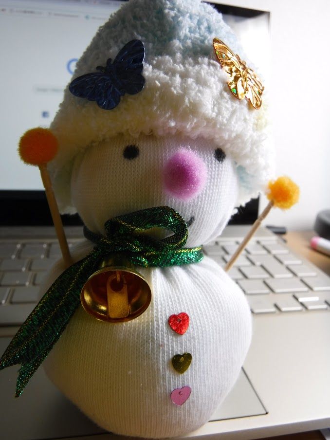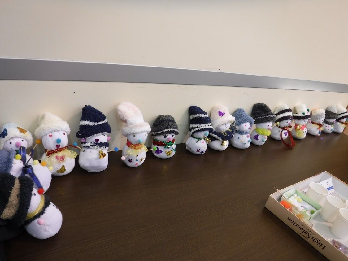 それぞれの個性のある雪だるま完成。わいわい言いながらつくると楽しいです。