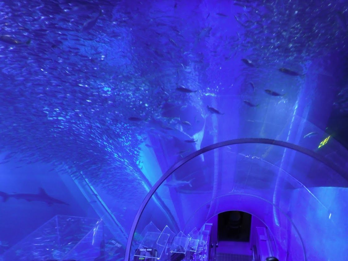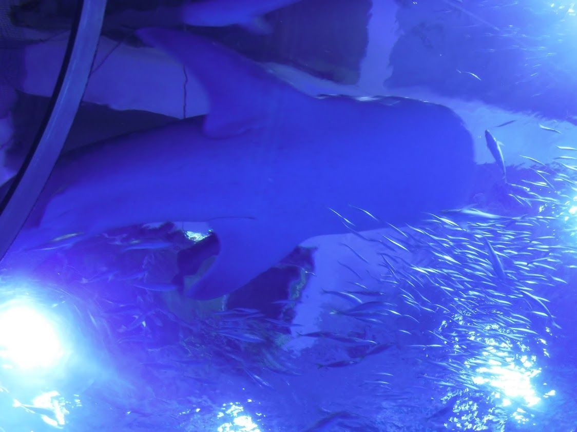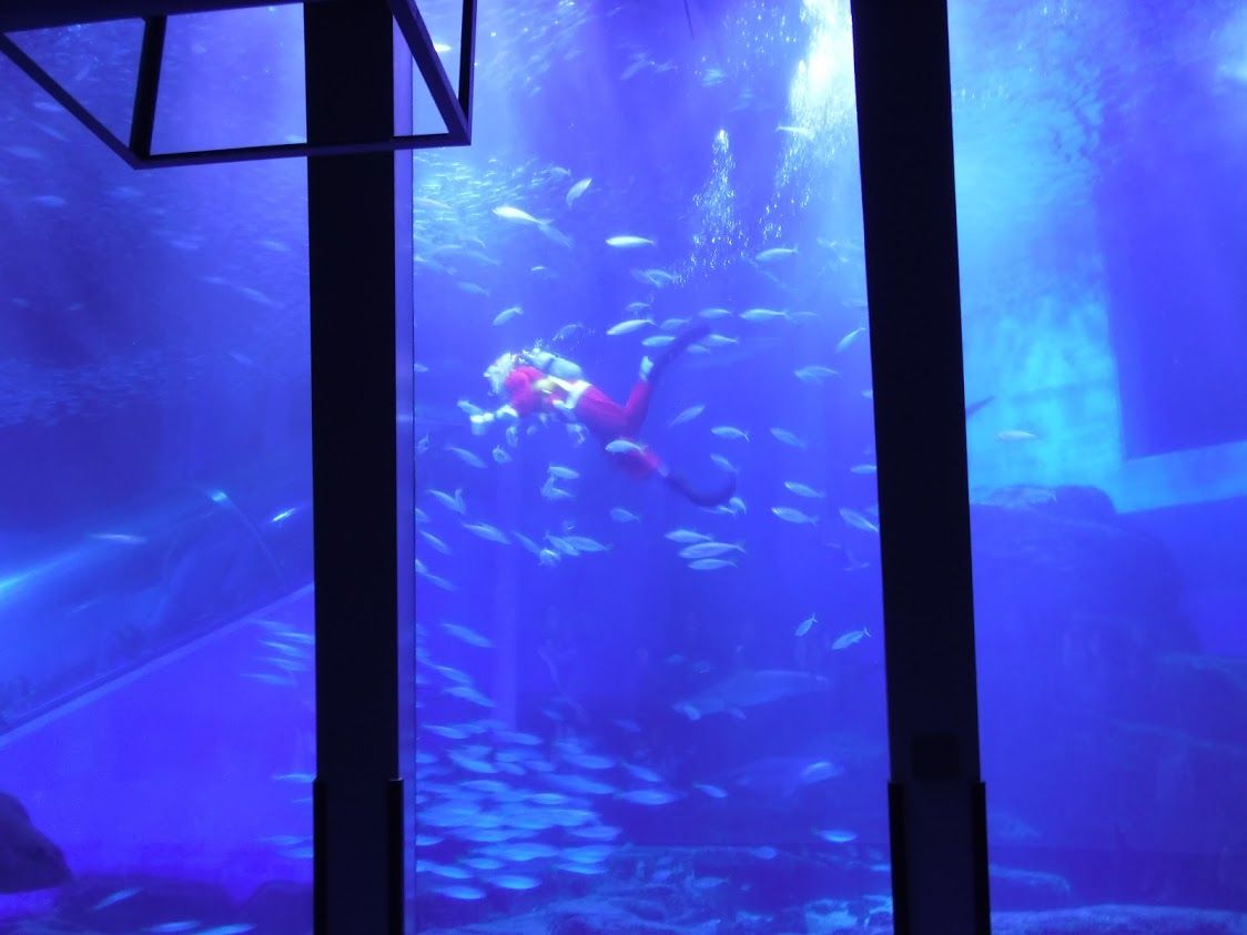 大水槽ではサンタさんによるジンベイザメの餌やりタイム。