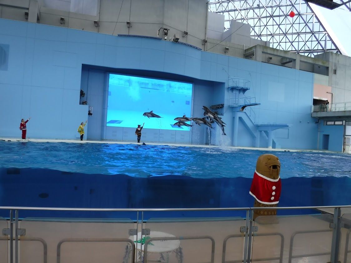タイミングよく海の動物ショーが始まっていました。クリスマスバージョンでした。