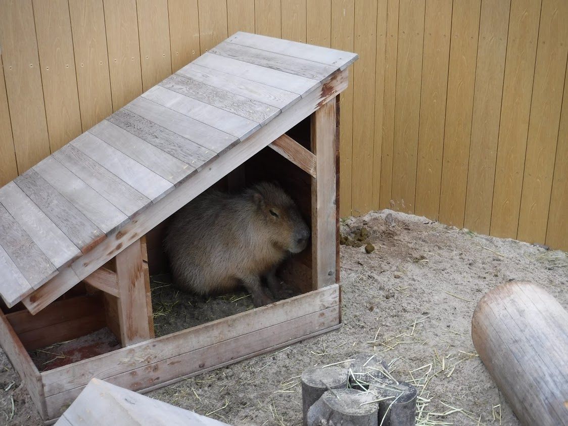 外にはカピバラたちがいました。お湯にも浸かっていました。