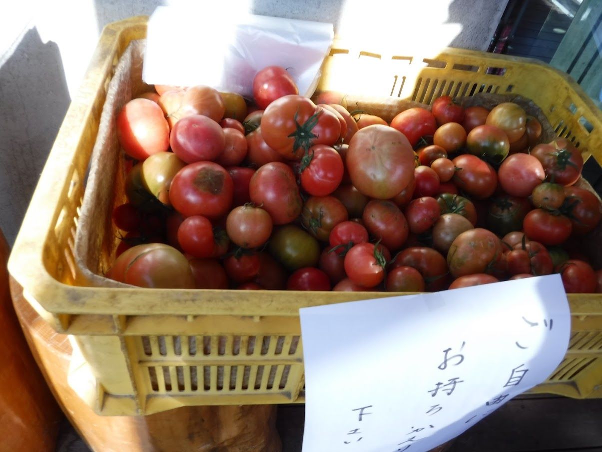 店頭では契約農家さんの規格外トマトがおかれていて,自由に持ち帰りができたので,赤いものを中心にいただいていきました。