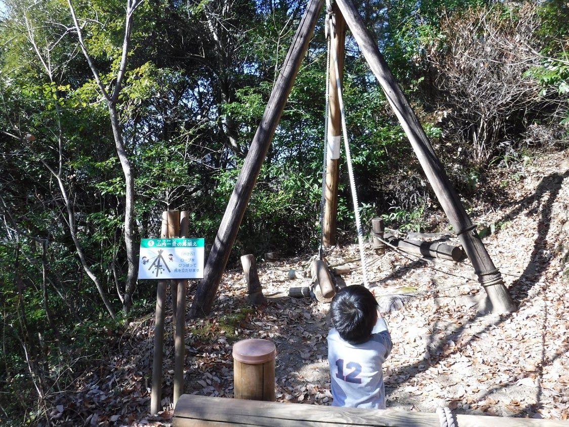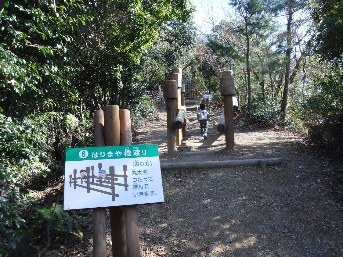 駐車場に近い場所では10を超えるアスレチックがちりばめてありました。