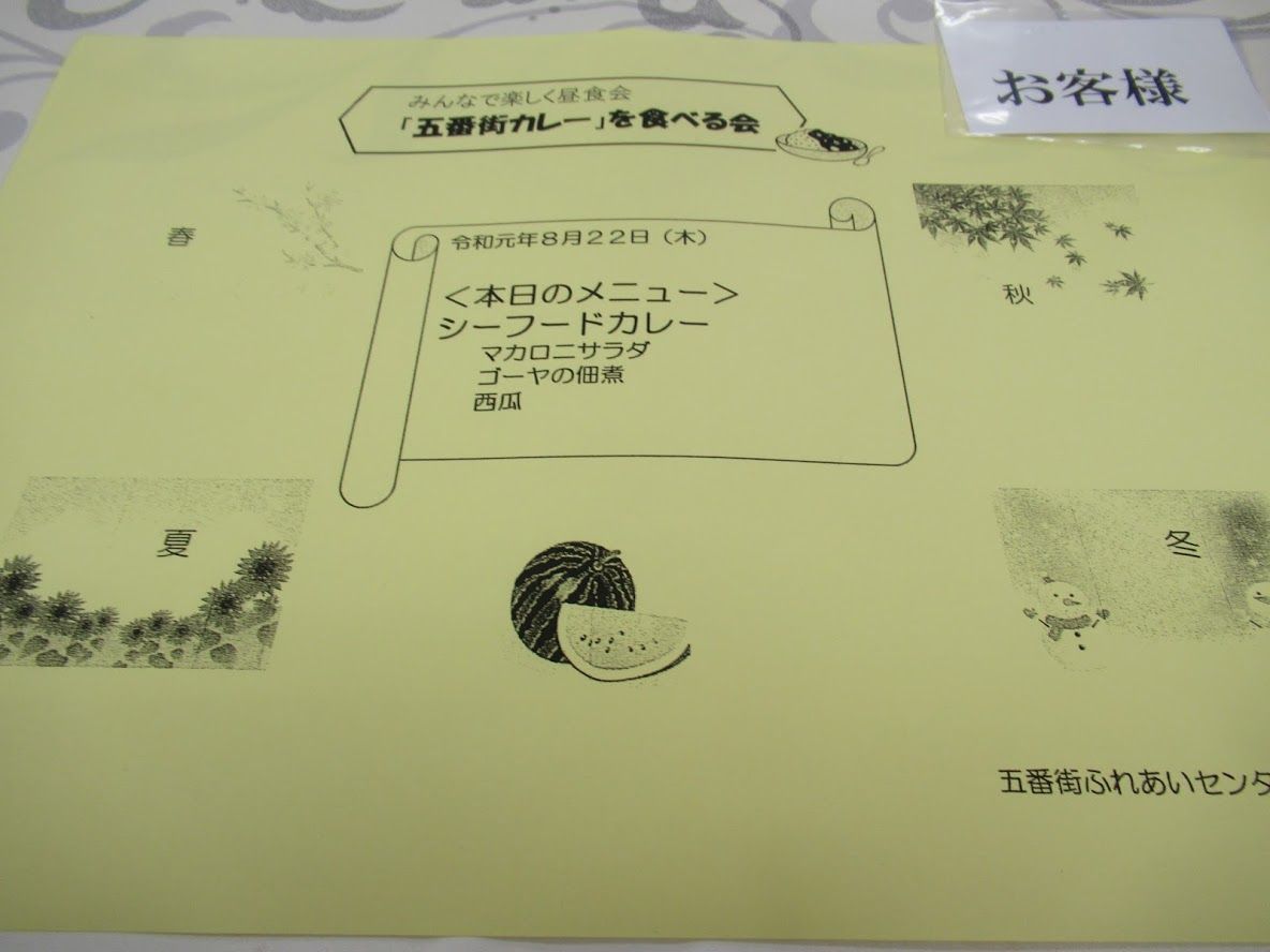 本日のメニューがテーブルの上に一人ずつ置かれていました。