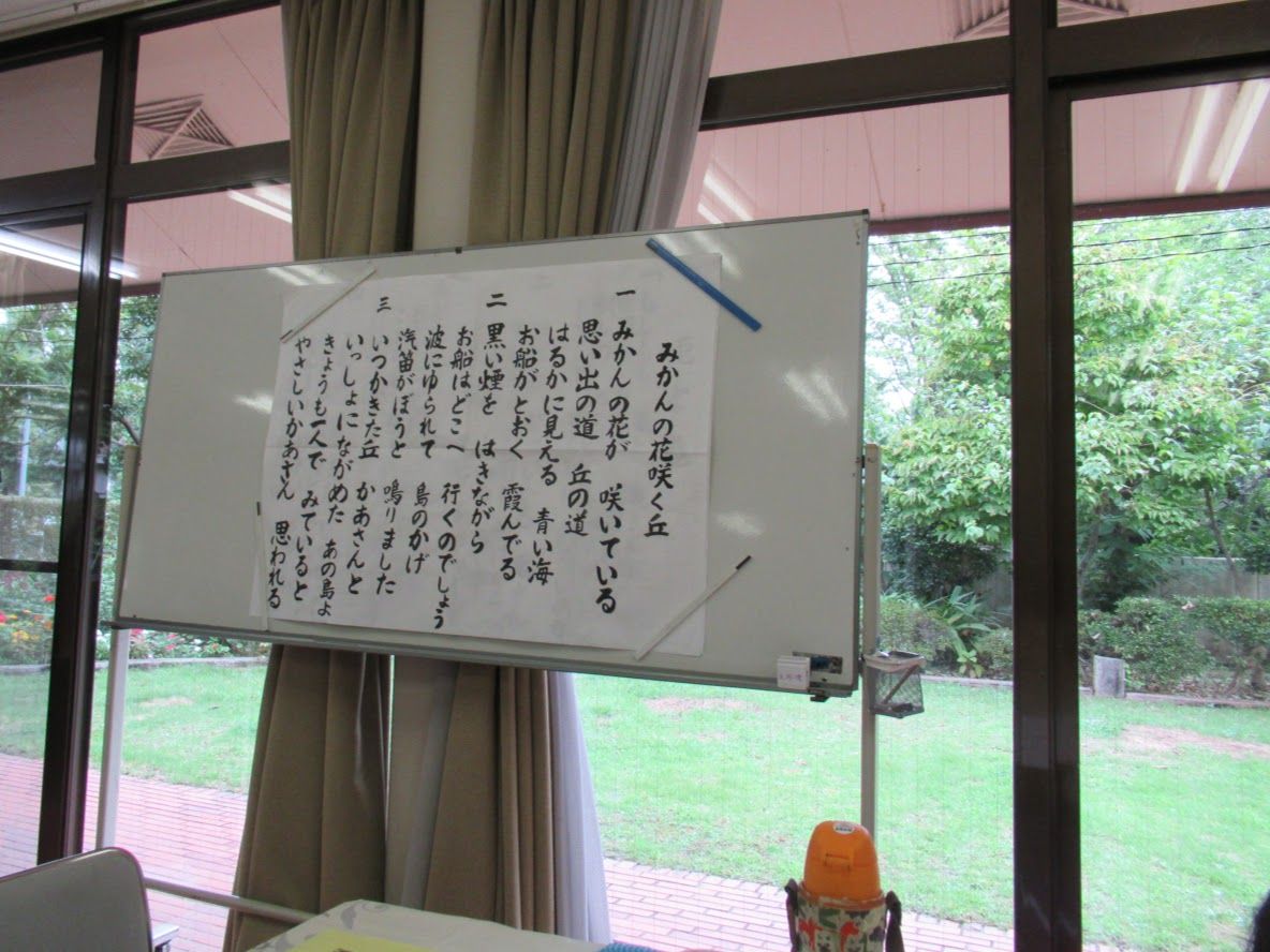 さらに季節の歌を歌って,『あいうべ~』体操でのどを柔らかくします。