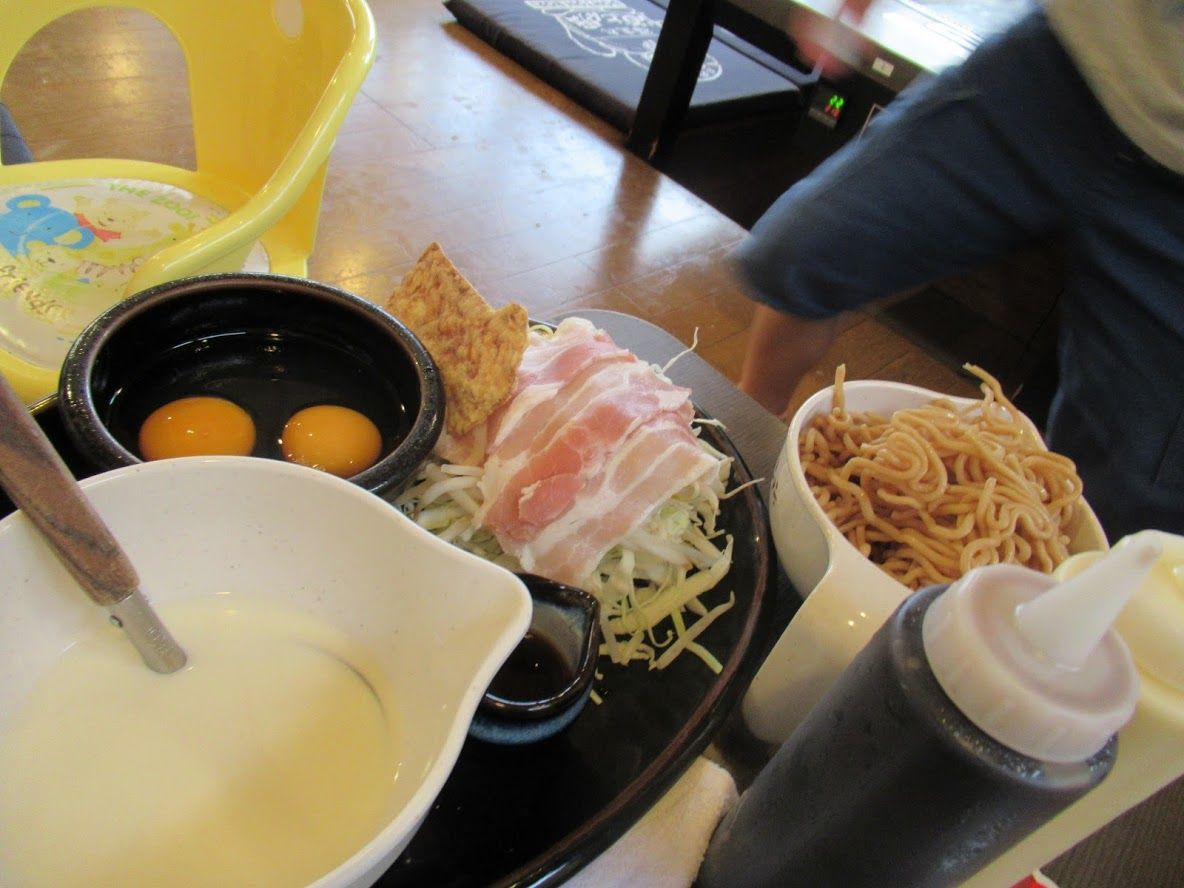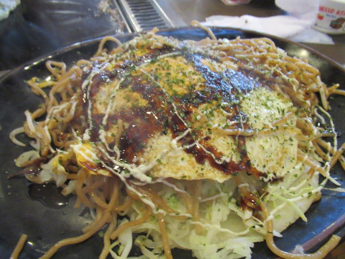 子どもは初めての広島風のお好み焼きに触れ,焼きそばの方に大満足したようです。