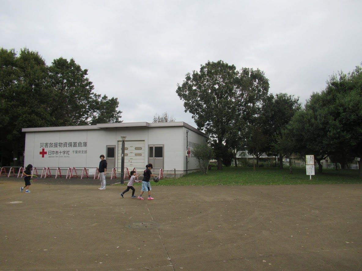 大きな防災倉庫があり,災害時の避難場所として想定されていることがわかりました。