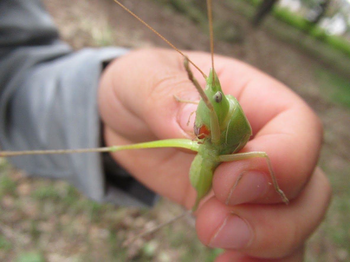 それでも人がなかなか立ち入らない芝生の中からバッタをゲット。