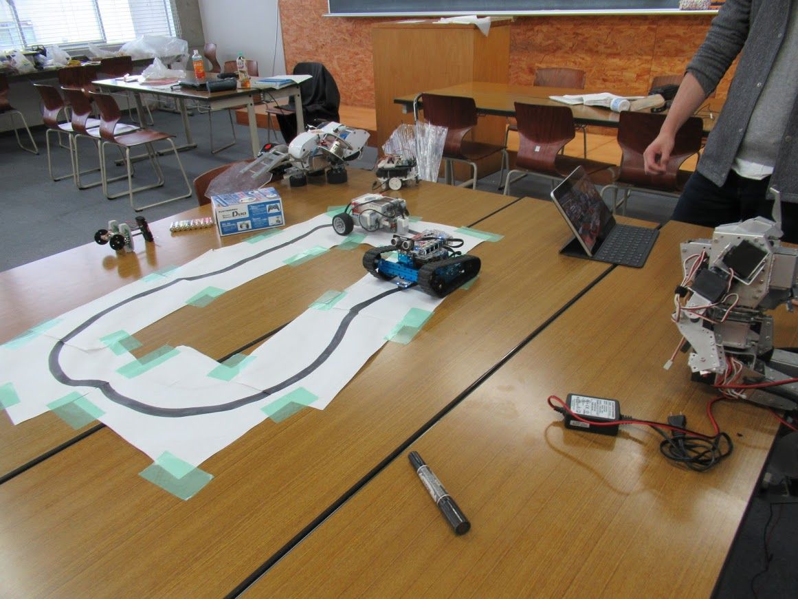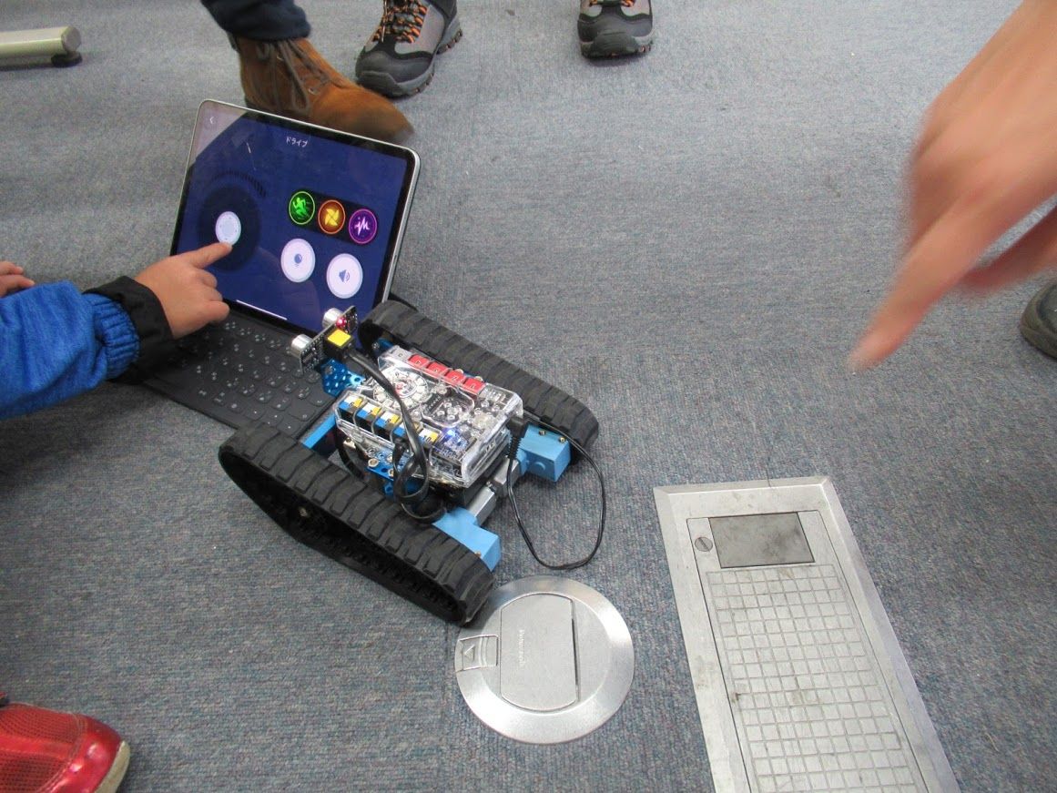 Bluetoothでリモコン操作できるキャタピラ付きのキットでは回転もライト点灯もサイレンも可能。