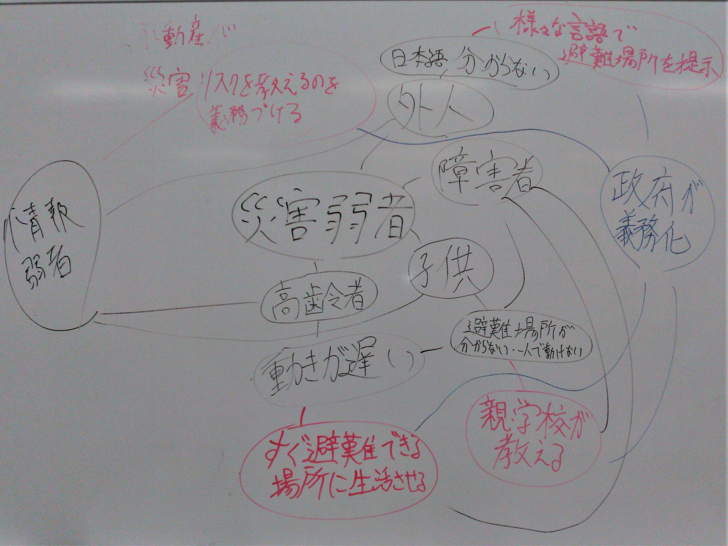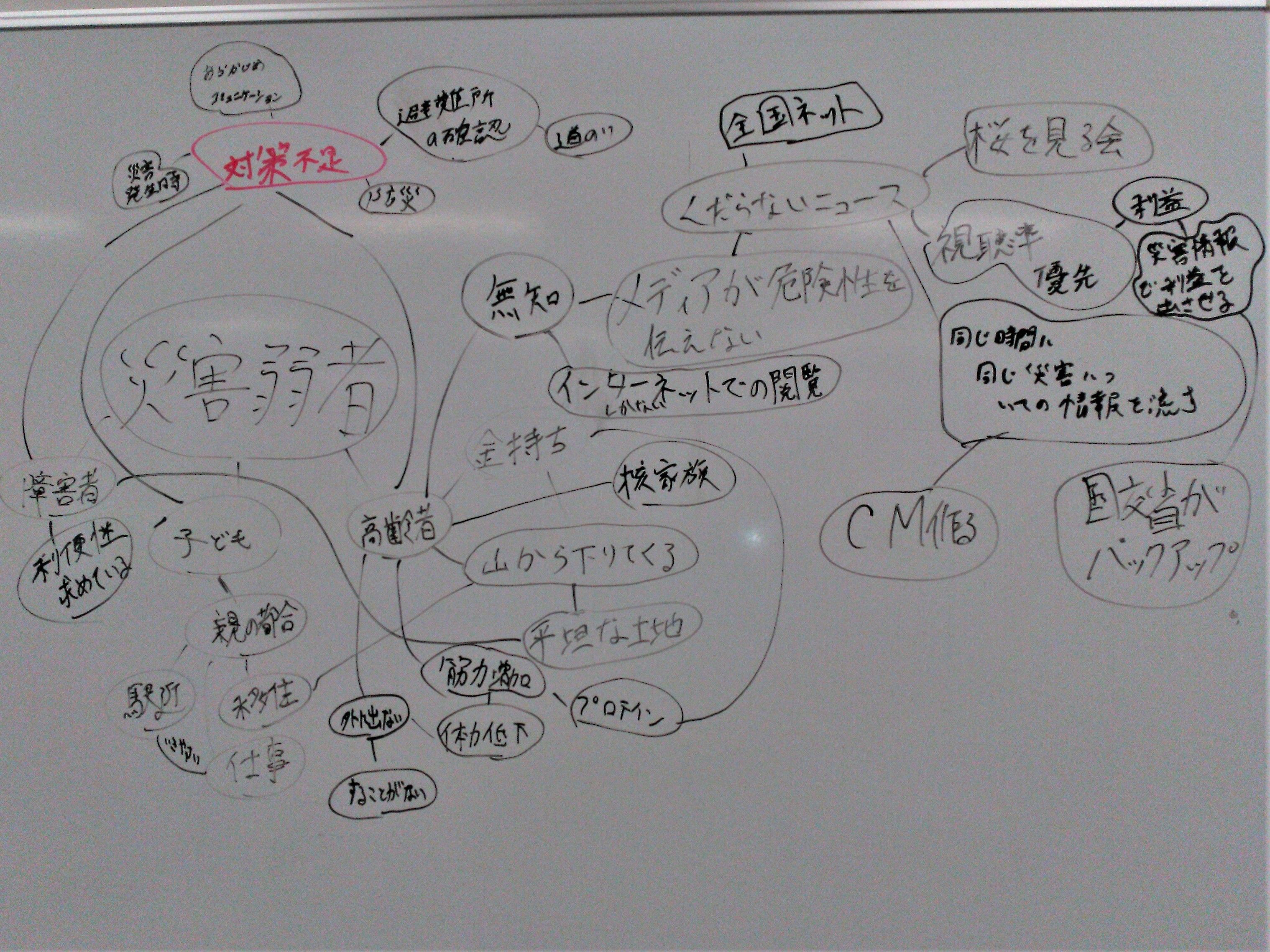 つづいて,ウェビングという手法を使って,災害弱者が直面している社会問題を分析,理解し,SDGsと関連付けます。