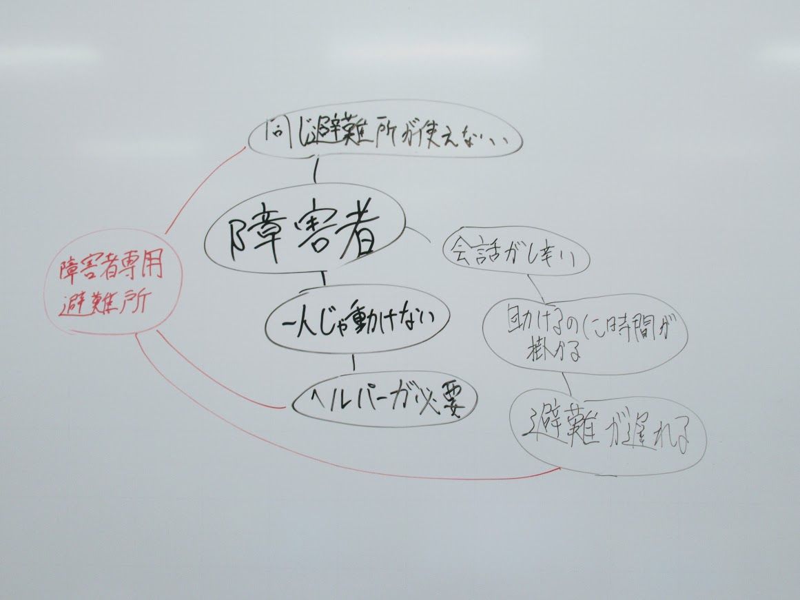 障がい者を真ん中に置いて,それに関する問題を結び付けて考えていきました。