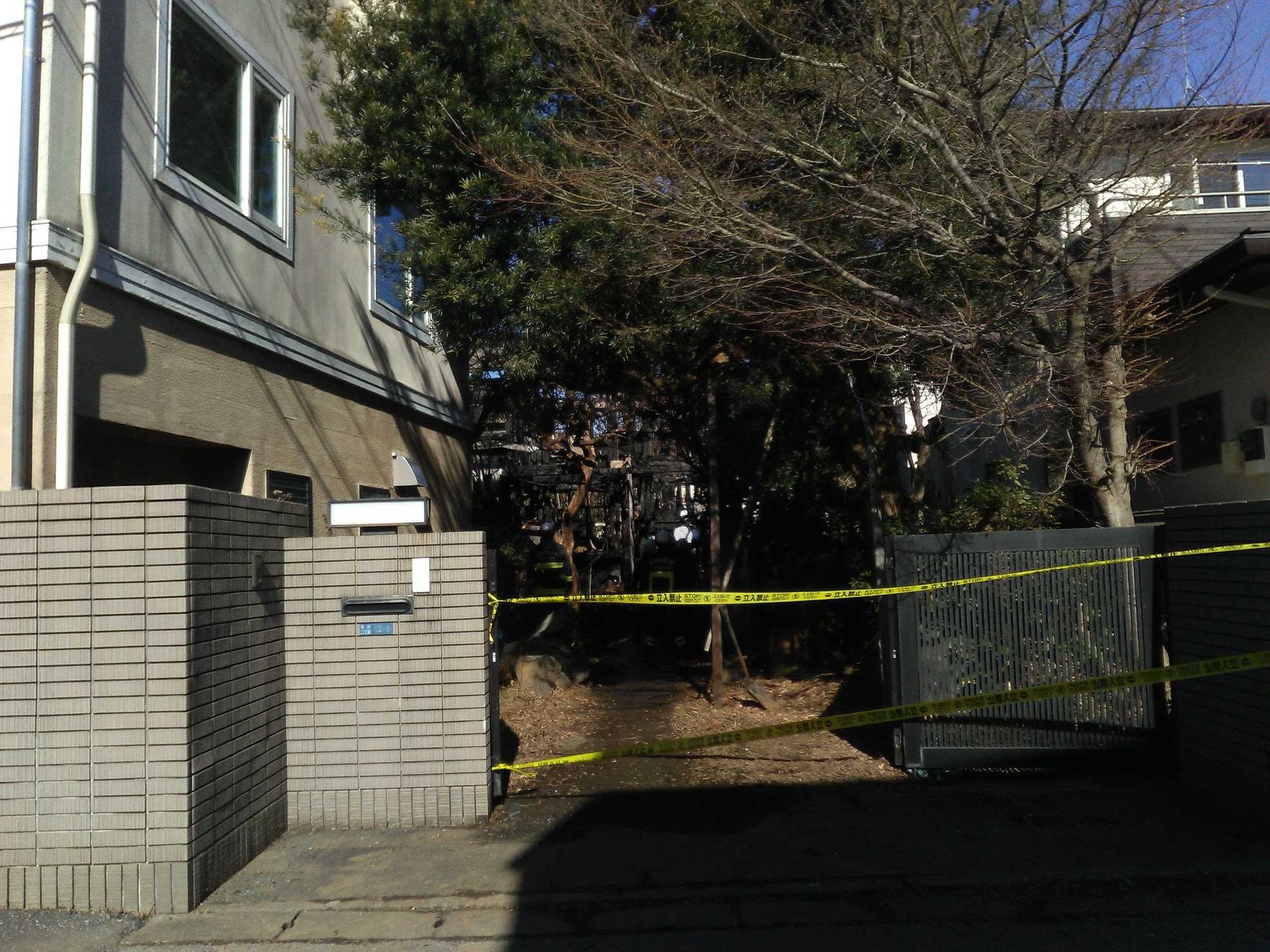 隣家にも火の粉がかかって窓ガラスが割れ,煤がついていました。