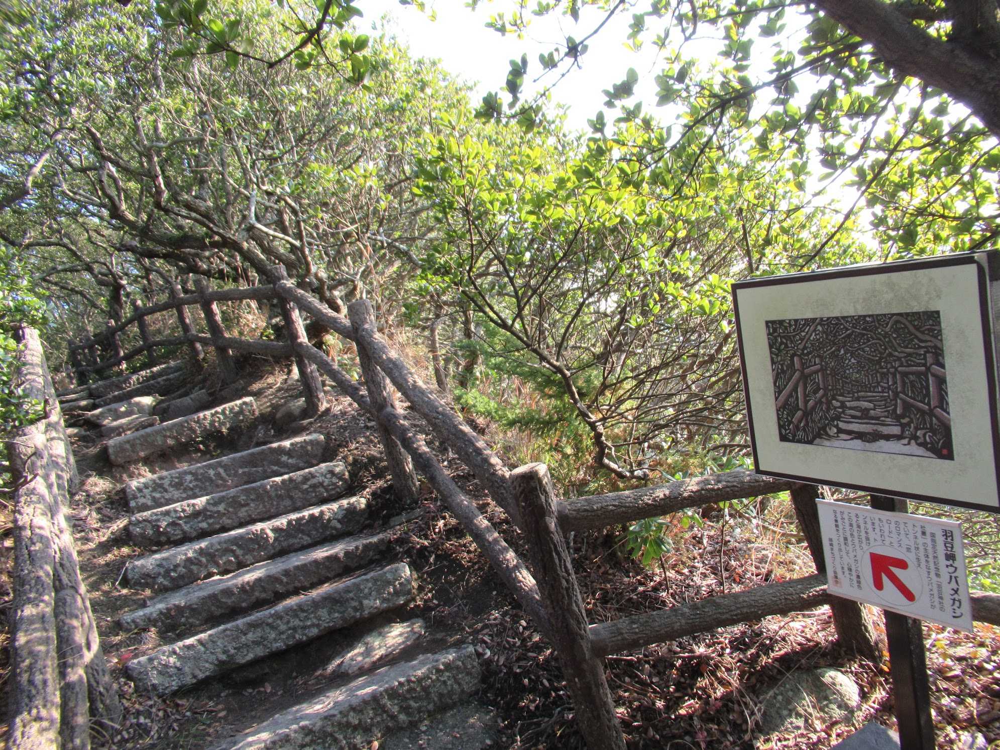 北の参道を降りると,ウバメガシの群生地。