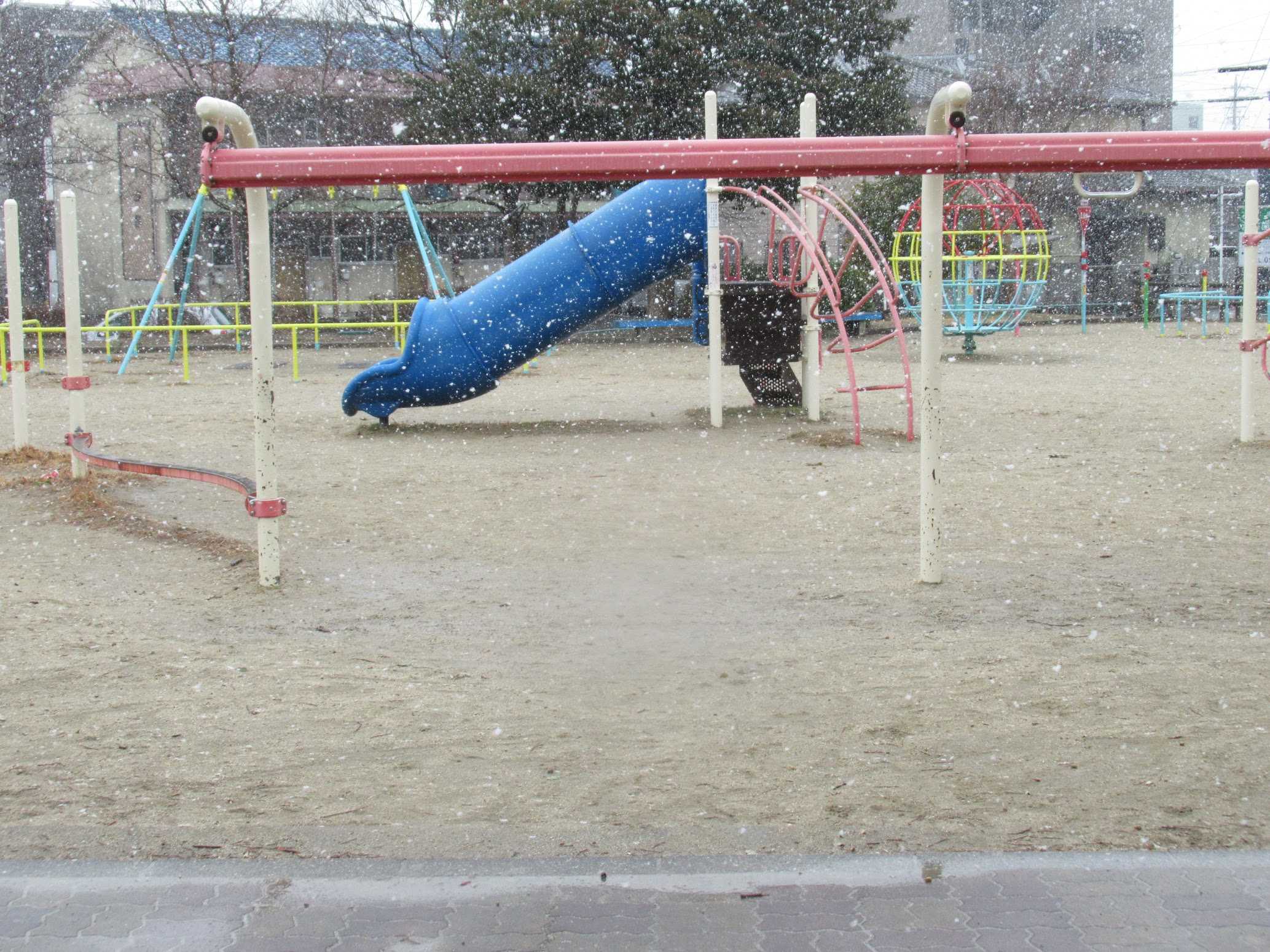 子どもは積もっているのを期待して公園まで出てきましたが,全部溶けていて逆に遊べないのですぐに帰ってきました。
