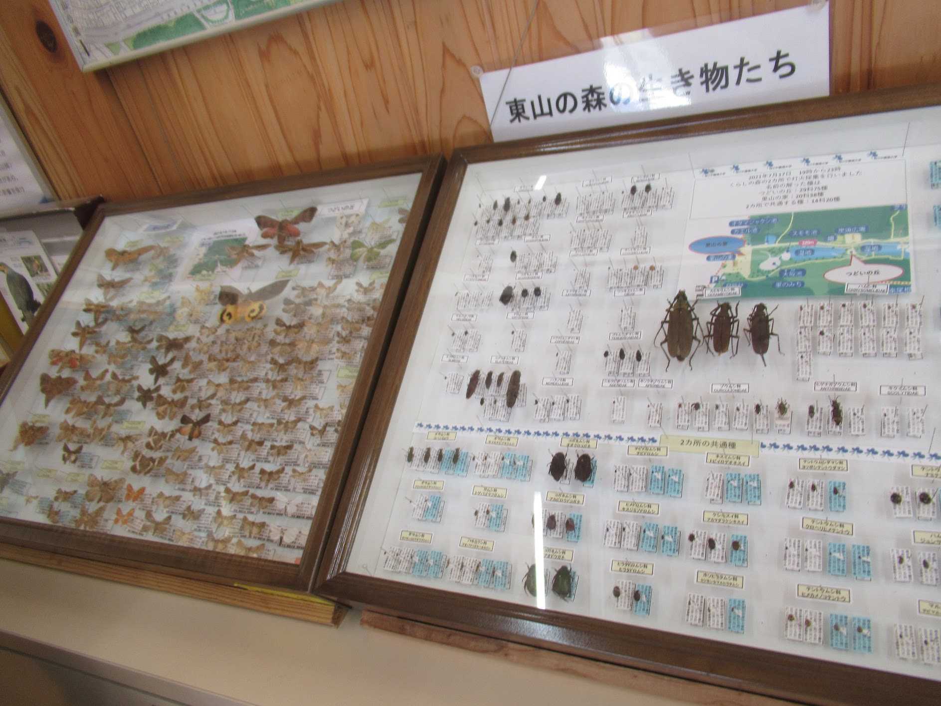 生き物の標本は蛾やカミキリムシでした。