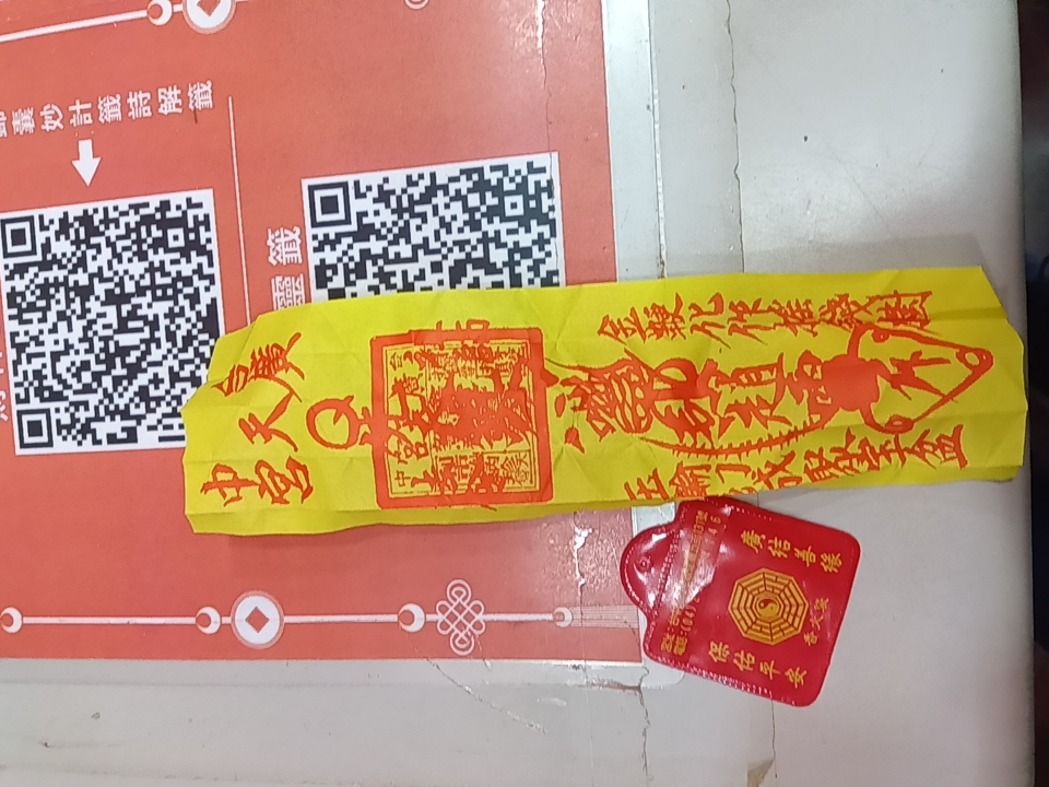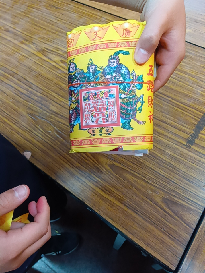 とりあえず見よう見まねでお賽銭を入れたらお守りと黄色い札の束を受け取りました。