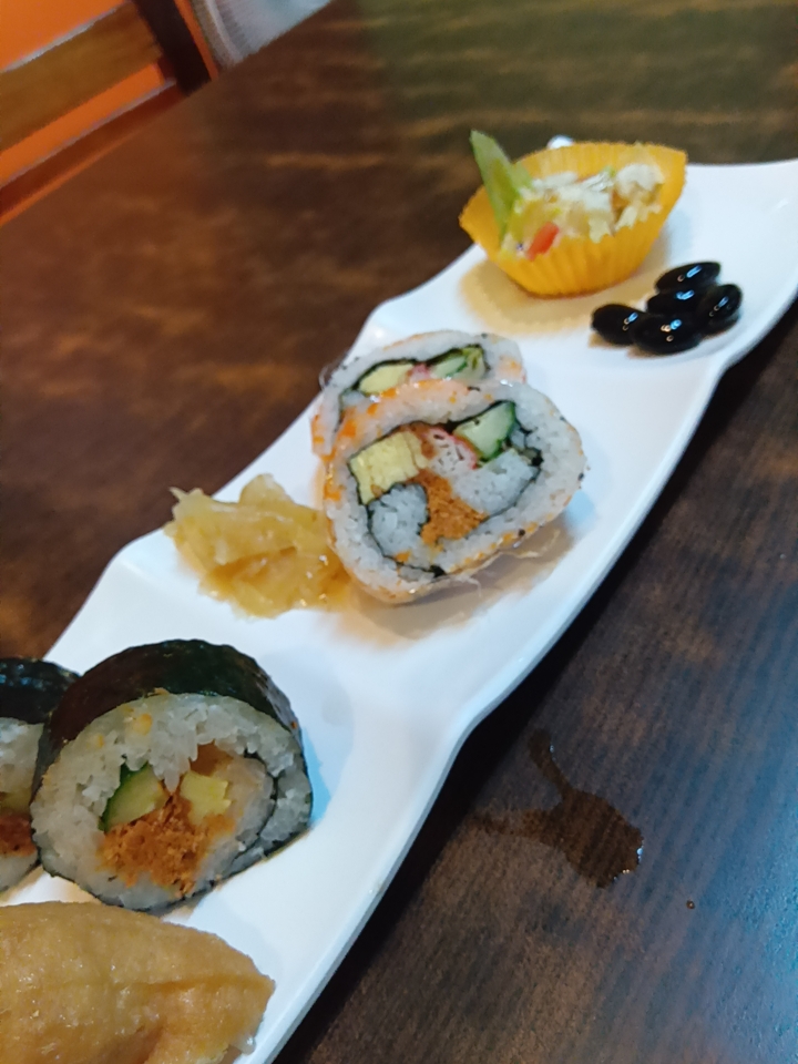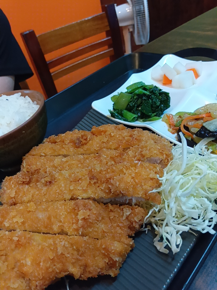 店構えからして日本の小料理屋を意識しています。BGMは小林幸子のおもいで酒でした。とんかつ定食,天丼,サバ寿司定食にしました。焼き魚を久しぶりに食べました。そして地味に感動していたのは,甘くない麦茶が提供されていたことです。衣がサクサク、肉厚で食べ応え十分。寿司は割高でしたが、味はまずまず。久しぶりに台湾の感じが一切しない料理を味わって感動していました。