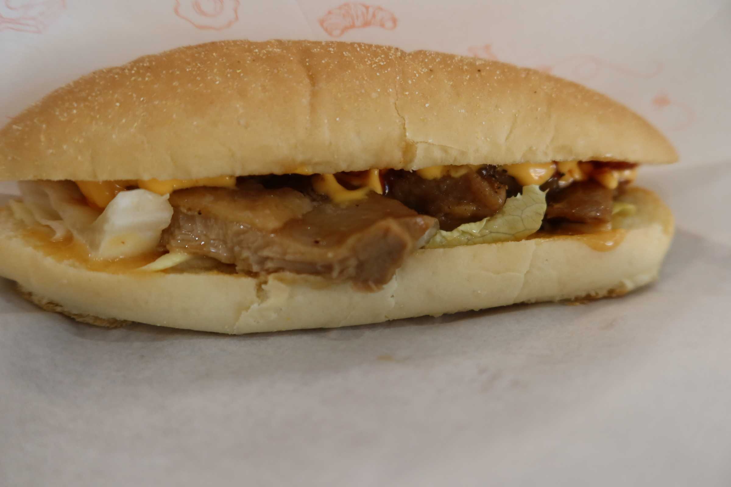 本当は刀削麵が食べたかったけど、子どもの反応がいまいちなのと、お客さんが多かったので近くのハンバーガー屋さんに切り替え。店内にはクマのぬいぐるみをはじめおもちゃなどいろいろ展示してあって面白かったです。フランスパンに豚肉が挟まった潜艇堡にしました。ちょっと味が濃い目に感じました。下の子のお口にも合わなかったみたいですが、店内の雰囲気はよかったです。