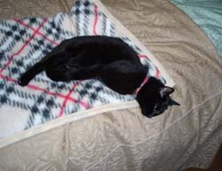 出かけたついでに猫のオモチャを買ってきました。猫じゃらしのオモチャですがこれで3本目。興奮して棒の先に付いてる毛を食べちゃうんです。今までたくさんと猫のオモチャを買ってきたけどメグが気に入いってくれたものは数少ない…。メグのおもちゃ箱があるが、たまに出しては遊んでいます。一つづつくわえて来て、気がつけば私の足下にいくつも並んでいる事もある。何か意味があるんでしょうね。子供だったら、お片付けしましょうって言いたいところだけど、片付けはしてくれません。片付けしてくれたらいいなぁ。この日記書いている今、メグは私の肩でお寝んね中!たまにピクピクと動く。何の夢見ているんだろう。片手で入力するのはちょっと大変です。しかし重くなった…。