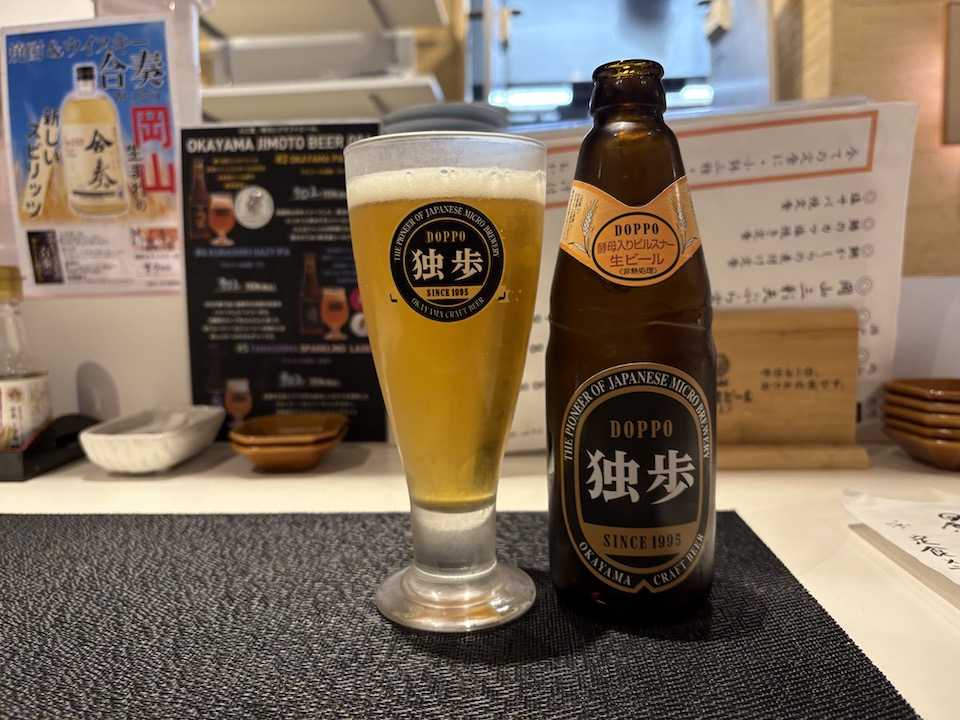 牛窓の独り歩き終えて岡山駅へ着いたらピロ♪後輩からメール近くに居るの⁉️駅地下の居酒屋行こうかカウンター席だけの店偶然にも2席空いたよ岡山地ビール独歩で乾杯独歩っていい名前だよね黄ニラおひたしそうそうこういう地物が食べたかったのそして地酒もね鰆のタタキ旨いなあ岡山で魚といえば鰆だよね調子に乗ったよ地酒もすすんで何杯飲んだか忘れた〆には津山ホルモンうどん最後まで岡山の食楽しんだ満足したね駅地下の居酒屋炉ばた焼 八閣いい店覚えました
