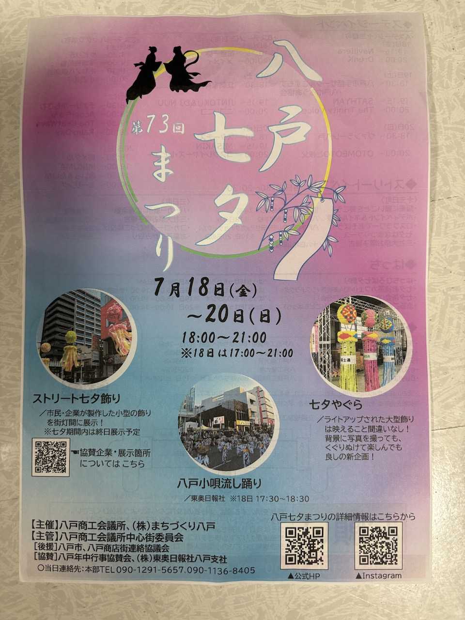 青森県八戸市です7/18(金)〜20(日)の3日間八戸七夕まつり昭和26年頃から始まり今年で73回目です大型の飾りは無くなりちょっと寂しいですが市民の中では恒例の行事ですね7/18(金)八戸小唄流し踊り祭りの初日は踊りでスタートですマチニワでは...輪になって踊ってる婦人会も2日目の7/19(土)夕方から歩行者天国人口22万人の地方都市の割には賑わってるかなはっちで茶会マチニワできらきら縁日中心街では九戸村の江刺家神楽連日暑かったです19日土曜土用の丑の日お祭り見たら夕食ですうなぎと穴子のハーフ丼旨いね盛夏ですね