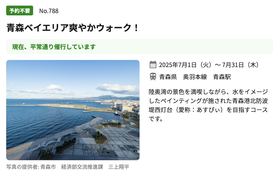 青森県青森市駅からハイキング青森ベイエリア爽やかウォーク!青森駅から北防波堤西灯台までの往復4.5kmのコースです暑い!朝から30℃超えてる短いコースだからササっと行こうスタート!メモリアルシップ八甲田丸昭和63年青函連絡船は運行終了八甲田丸は青森港に停泊観光営業中です上は青森ベイブリッジ下は青森ラブリッジ歩行者用のラブリッジを渡ります円錐形の灯台が見えるあそこが折り返し点です風光明媚な青森港え?護衛艦が2隻停泊?気にはなるよ護衛艦「てるづき」「むらさめ」無料で一般公開だって船の構造には関心はあるけどねまずは駅ハイでしょ遠くから外観はよく見るよ北防波堤西灯台までちゃんと行かなきゃ着いたよ西灯台あすぴぃ青森ベイエリア最高!三角形のアスパム=青森県観光物産館青森ベイブリッジが見えますねあすぴぃを見上げる足元には、なぜか...サバだ!折り返しです青森港北防波堤西灯台あすぴぃ