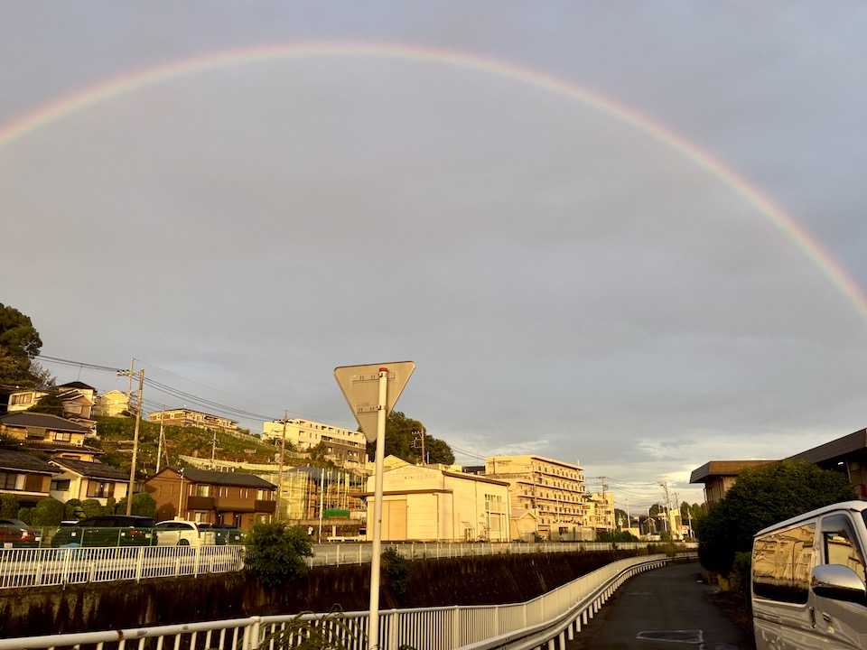 父が入院していた病院のすぐ近くで虹を見たんですお昼に雨が降って夕方上がったところコンビニの前で外側にうっすらダブルレインボー🌈父が亡くなる前日でした毎日暑いですね皆さん熱中症には気をつけてね