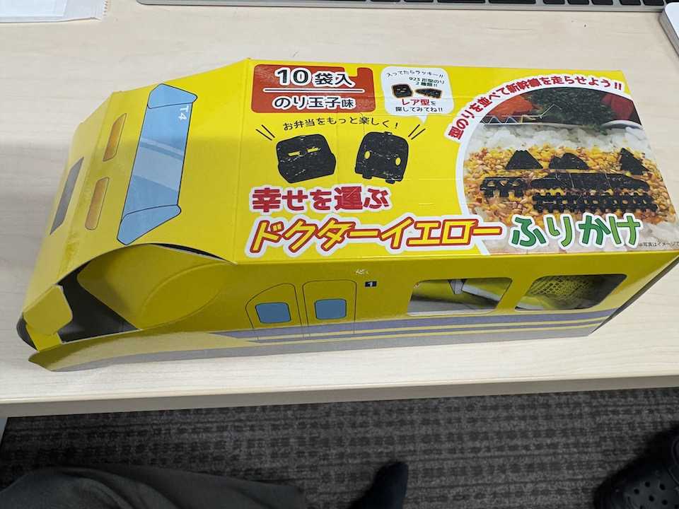 M星人さんからいただいた幸せを運ぶドクターイエローふりかけ海苔たまご味いわゆるのりたまとよく似ている美味しいよ小さな海苔が電車や線路の形してたりねなかなか判別しづらいものもあるのが面白いのお弁当にふりかけて眺めてるうちにふやけてきて形も変わるのさドクターイエローは東海道・山陽新幹線の点検車両の愛称出会うと幸せになれるという実はひなちゃん一度も実物を見たことがない2025年1月29日に引退しちゃったんだよね残念...ふりかけの箱はティッシュケースになる取っておきましょ