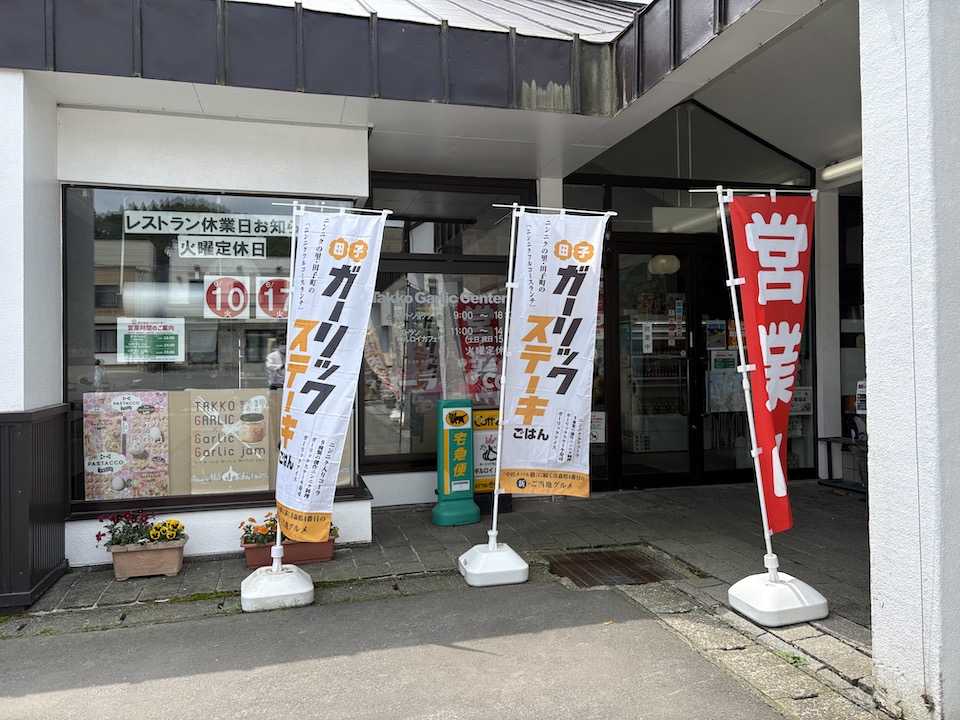 青森県田子(たっこ)町です田子町はにんにく生産で有名です今が旬なんですよ田子ガーリックセンターご当地グルメ田子ガーリックステーキごはん1800円です全てにんにくを使ったフルコースランチにんにく入りコーラのタッコーラで乾杯登場ですガリステごはん2025バージョン前菜盛り9種全ての料理に田子産にんにく使用メニューが毎年変わるんですだから毎年食べに行く価値がある田子牛青森県産豚あべどり鉄板で焼いて3種ソースが付いた寿司飯を巻いて食べるデザートはにんにくアイスこれも美味多種多様に楽しめてここまでやって1800円は安いと思う「そんなものがあるんですか?」「臭くないですか?」そんなこと聞かないでよねにんにくの里でにんにくメニューとことんこだわって良いのです