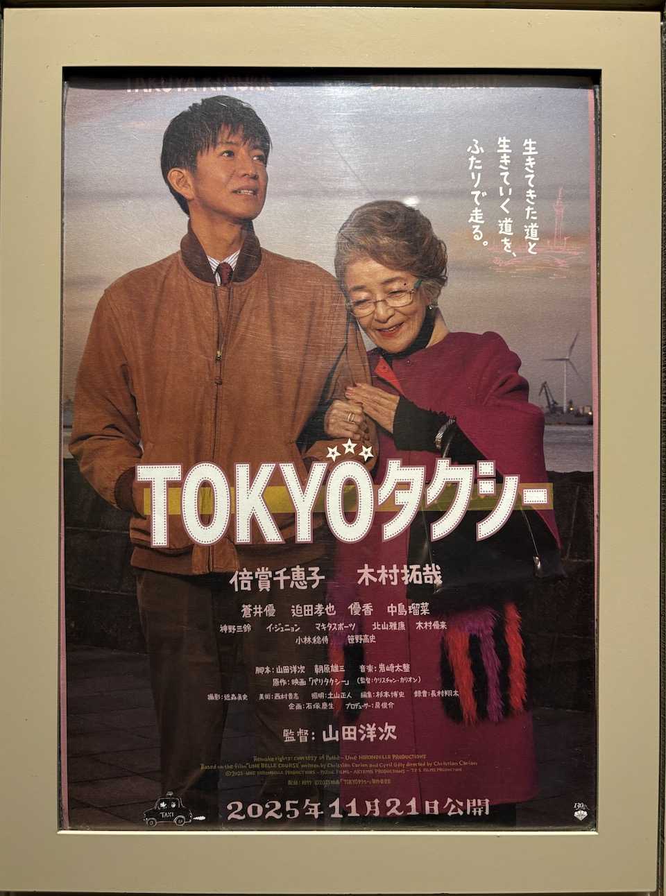 隣町のイオンで映画を観てきました。TOKYOタクシー。山田洋次監督。木村拓哉、倍賞千恵子が主演です。フランス映画の「パリタクシー」が原作。いわば、その東京版ですね。個人タクシーのドライバーが、85歳の老婆を乗せる。柴又帝釈天から、葉山の介護施設に向かう。途中、過去を振り返りながら、都内各地を寄り道。人生のラストの1日ドライブ旅です。ストーリーもカメラワークも、山田洋次テイストを感じました。人情ホロリ系なんですけど、それにしても、木村拓哉がカッコ良すぎ。