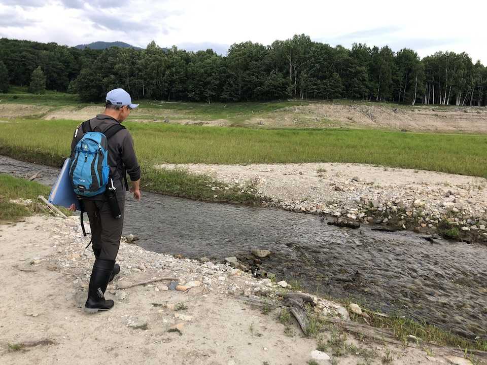 長靴を履き、タウシュベツ川を渡り