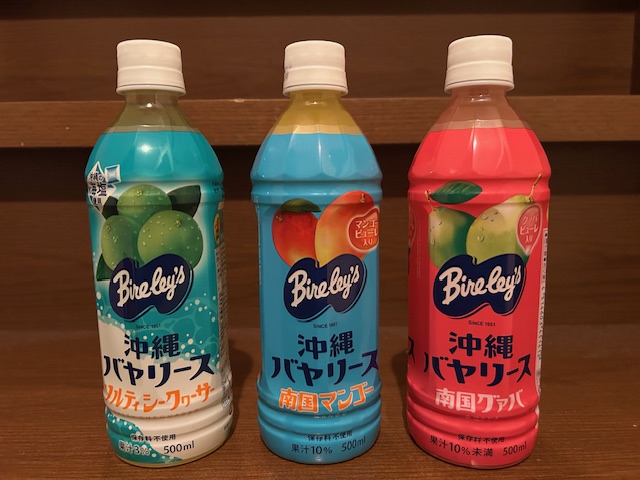 去年12月に沖縄へ行ったときに買い求めたバヤリース。冷蔵庫に入れっぱなしになっておりました(笑)。妻から邪魔だから早く飲んで、とのことでいったん冷蔵庫から出しました。 いずれも「沖縄バヤリース」で沖縄県浦添市で作られているとのことでした。 左から「ソルティシークワーサー」、「南国マンゴー」、「南国グアバ」です。南国らしい果物ですよね。一度には飲めませんので、「ソルティシークワーサー」をいただきました。バヤリースだから甘いのかなと思ったけど、そこまで甘くはありませんでした。まぁシークワーサーだからね・・・。 ご当地の飲み物がたくさんありますが、バヤリースは結構珍しいのかな・・・。