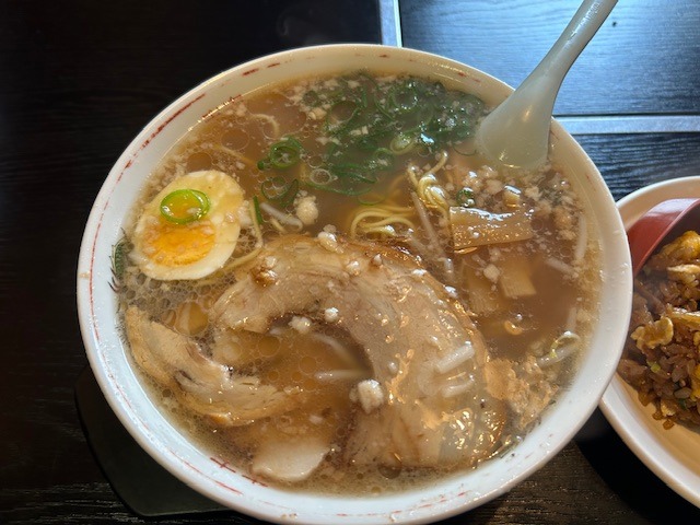 醤油ラーメンに入っているチャーシューは柔らかくておいしかったです。このセットで1050円はなかなかお得かなって思いました。今はラーメンと言えども高くなっているからね・・・。他のメニューを見ると塩ラーメンの方が100円高かったんです。塩ラーメンもきになるなぁ・・・。