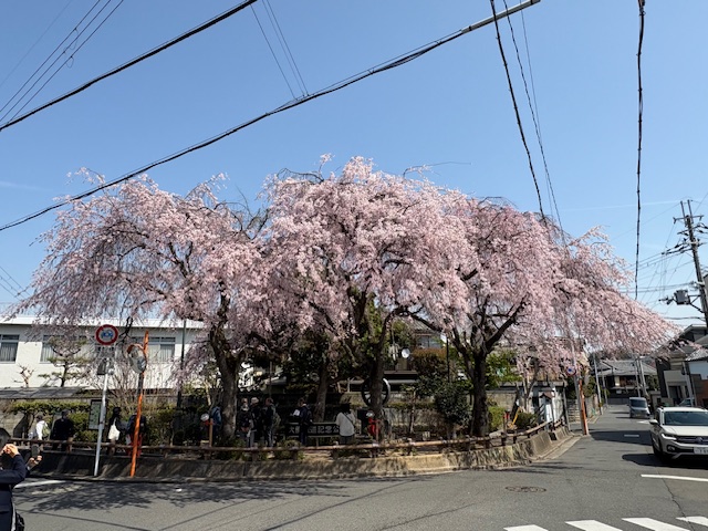 大佛鉄道跡地の枝垂れ桜のところまでやってきました。ここは意外と交通量の多いところなのですが、車がやってくるのにコスプレした外国人が邪魔っ気だったなぁ・・・。