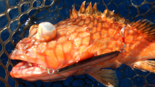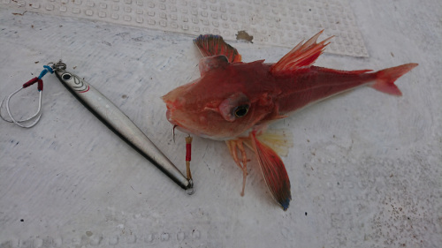 台風が過ぎてから海況が良くない日が続き週末にようやくチャンスが巡ってきた。今回は皆休めそうなんで、久々に4艇で浮くことに。この時期安定のポイントをチョイスした訳ですがさてさて釣果の方は…10月17日 6:00~らずくん、はじけさんの後に沖へ若さんは自分より少し遅れて出た模様まずは、ヒラマサポイントへ直行曇天雨上がり やや風・波あり…そして寒いボトムから15m程なかなかの感度が…当たらんのれす程なくして、らずくんも到着並んでシャクっているとキタ!けど…なぜか…ハーマチ(´Д`|||)続いて何か喰ってドスン!が…ん!?あれ…根掛かった!?どうなってんのー!って、らずくんに突っ込まれながら根掛かりを外そうとしていると、、ラッキー外れた!ところが…やっぱ魚付いてる!根に入ってた模様(;´∀`)引かないけどまあまあの重みの獲物は…良型のウッカリその後、アタリも無くなったので深場へ感度も無くアタリも無いけどまたまたウッカリ40オーバーその後、チビガッシーやらアヤメガッシー程度ところで、、このアヤメカサゴ…南の海では定番の獲物ですが、去年辺りから北のある海域でも釣れた情報がチラホラそして、この日 自分は4匹捕獲どうやら定着し始めた模様成魚が回遊して北上したのは考え難いのでカサゴと同じ生態と仮定するとメスのお腹で孵った稚魚が海流に放たれこの海域に辿り着き死滅せずに定着。大型がいないのはそのせいなのかと。今後の経過を探っていかねば。。さて、その後 時間開けてヒラマサポイントへ戻るもダメイカもダメダメそこへ、はじけさんがデカい根魚の写真が届き…らずくんからキントキ祭り!とLINEが届き…やむなくUターン(´Д`|||)そして、らずくんに合流してキントキポイントの一投目フォールでキントキ!しかし、キントキこれにて終了(´Д`|||)しつこくやるとアズマハナダイとウッカリのダブルとかレンコとかまたアヤメとか・・・アコウとかイカリムシだらけのアコウとか…綺麗に虫を取り除いて注射針でエア抜いてリリース結局、最後までおっきいのは釣れず15:00沖上がり最近は平日 単独で行くことも多くなったので古い付き合いの仲間と釣りが出来て良い1日を過ごせました。お付き合いした皆さんお疲れ様でした~( ´∀`)シーフロアコントロール レクター 150g価格:2805円(税込、送料別) (2020/10/22時点)楽天で購入(5)【送料無料】 シマノ オシアコンクエスト リミテッド 300PG RIGHT (右ハンドル) 2019年モデル /ベイトリール/ジギング用リール両軸リール/ジギング/タイラバ/オフショア/船釣り/価格:43472円(税込、送料別) (2020/10/22時点)楽天で購入