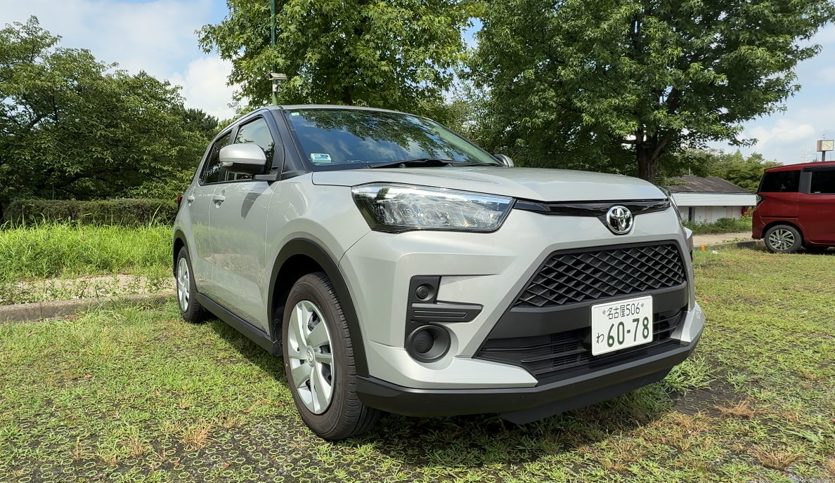 皆さん、こんにちは! 今回は、トヨタの人気コンパクトSUV「ライズ」の内外装を徹底レビューします。お借りしたのはガソリンモデルのXグレード。三井のカーシェアーズでベーシッククラス料金でレンタルできるので、手軽に試せるのも魅力です。それでは、ライズの魅力に迫っていきましょう!エクステリア:SUVらしい力強いデザインフロントライズのフロントフェイスは、迫力満点の大型フロントグリルが特徴的。グリルは網目状のデザインで、トヨタのエンブレム周りにはピアノブラックの加飾が施されています。フォグライトは装備されていませんが、樹脂製のフロントバンパーがSUVらしいタフな印象を与えます。ボンネットは角ばった形状で、車幅感覚や前後の距離感が掴みやすいのがポイントです。フロントライトは横長のデザインで、シャープな印象。上部にはメッキのラインが入っています。フロントライトとサイドミラーのターンランプはLEDですが、フロントウインカーは豆球です。※最上級グレードZに限り、フロントウィンカーはLED(シーケルシャー式)になりますサイドサイドビューは、SUVらしい力強いデザイン。タイヤ周りやドア下部には樹脂製のパーツが用いられ、タフな印象を強調しています。斜め後方のガラスからリアドアにかけて、プレスラインが入り、躍動感を演出。AピラーとBピラーはブラックアウトされ、窓ガラスが大きく見えるデザインです。タイヤはダンロップのエナセーブ(195/65R16)で、ホイールにはキャップが装着されています。リアリアのデザインは、後方のガラスとリアガラスの境目が黒色になっているため、窓ガラスが大きく見えるのが特徴。シャークフィンアンテナがスタイリッシュさを演出しています。中央のトヨタエンブレムから黒い樹脂パーツが横一直線に広がり、リアライトに繋がるようなデザインも個性的です。フロントやサイドと同様に、リアバンパー付近も樹脂素材で覆われ、アウトドアなイメージを強調しています。ハッチのドアにはリアバンパー上部から繋がるプレスラインが施されています。リアライトは、テールとブレーキがLED、ハザードとリバースが豆球です。鍵の開閉リモコンキーの下のスイッチで解錠、上のトヨタマークのスイッチで施錠ができます。鍵を携帯していれば、ドアグリップのセンサーに触れるだけで開閉可能。トランクも、スイッチを押すだけで簡単に開閉できます。インテリア:シンプルながらも使いやすい空間インパネ・ドア周りインパネは全体的にハードプラスチック素材ですが、エアコンの吹き出し口周りは奥行きのある立体的なデザインで、個性を演出。シフトレバー周りのセンターコンソールは少し高めの位置にあり、包み込まれるような空間デザインになっています。センターコンソールの両側にはシルバーの加飾が施されています。ドアの内側もハードプラスチックですが、中央の樹脂部分には異なる素材が使用されています。ドアレバーはメッキ仕上げで、ドアグリップは握りやすい形状(2箇所グリップあります)。運転席の窓スイッチはオートパワーウィンドウになっています。夜間のインパネ周りは、エアコンパネル、シフト周り、ステアリングスイッチ、ドアパネルのスイッチがオレンジ色に光り、視認性を確保。運転席のオートパワーウィンドウのスイッチのみがオレンジ色に光ります。シート・アームレストフロントシートはファブリック素材で、内側には特徴的な柄が施されています。ヘッドレスト周りやサイド部分は、メッシュな素材が使用されています。クッション性はボリュームがあり、弾力性も十分。長時間座っても疲れにくい設計です。側面のサポートもしっかりとしています。中央のアームレストはハードプラスチック素材で、前後のスライドはできません。シートポジションによっては、肘を置くことができるかもしれません。運転席のシート調節は、側面のリクライニングレバーと足元の前後調節レバーで行います。助手席側も同様に調節可能です。両側ともシートの高さ調節はできません。ステアリング周り・メーターステアリングはウレタン素材で、トヨタエンブレム以外にメッキ加飾はありません。左側にはオーディオや電話関係の操作スイッチ、右側にはドライブモードの切り替えスイッチがあります。クルーズコントロール関連のスイッチは装備されていません。ステアリングの位置調節は上下のみ可能で、前後の調節はできません。ライトスイッチはオートライトで、手前側に回すと一時的にオフにできます。ウィンカーは軽く動かすと3回点灯し、奥まで動かすと通常点灯します。ワイパーは通常の操作感で、時間間隔の調節はできません。メーターは2眼タイプで、右に速度計、左にタコメーターがあります。中央の液晶画面には時計、ガソリン残量、シフト、オドトリップが表示されます。下のボタンでディスプレイ表示の切り替えが可能です。ドアを開けると、開いているドアをイ