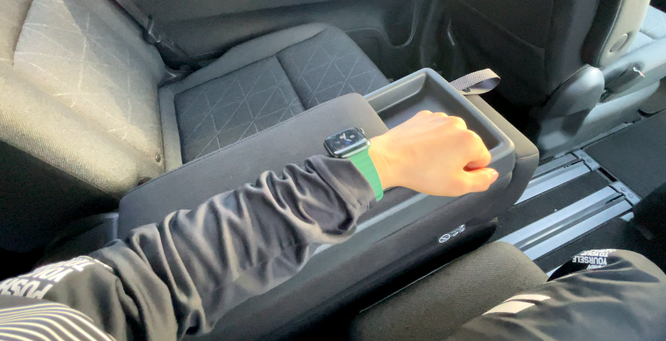 シートの真横に設置されているため、シートポジションを動かしてもアームレストは常に真横にあるのが便利です