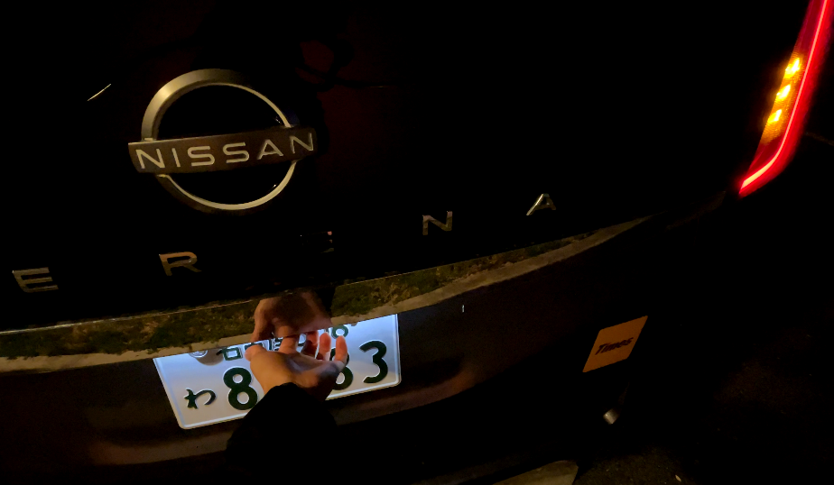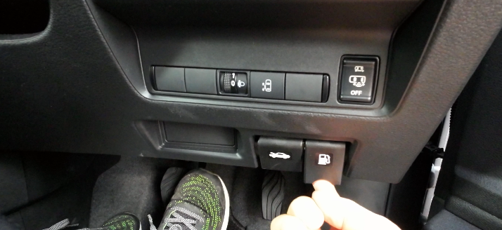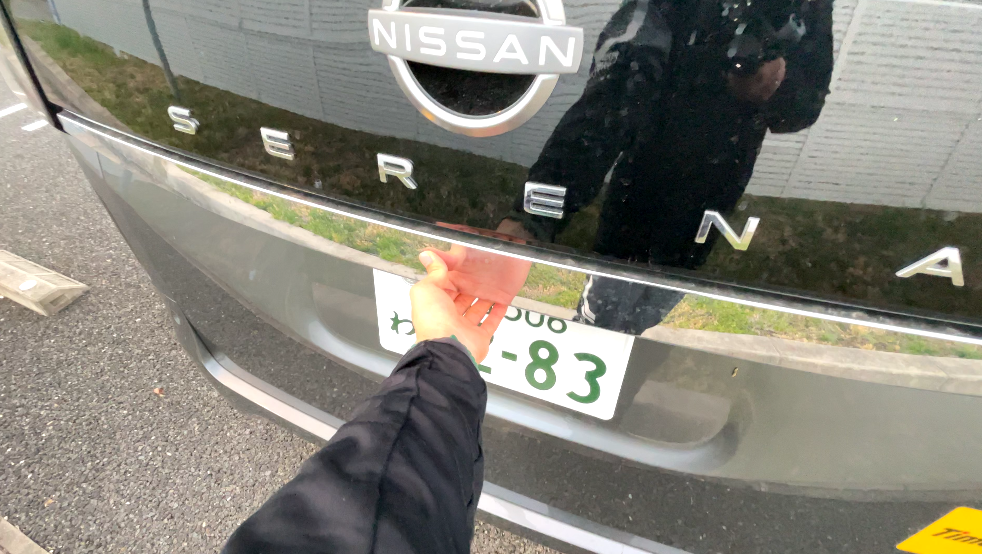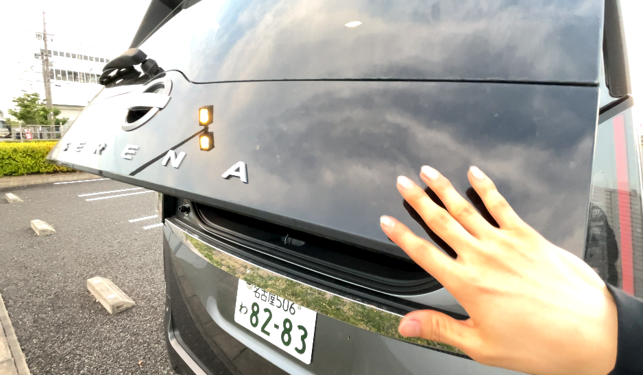 荷室全体を開けるには、セレナロゴの真下にあるスイッチを押します