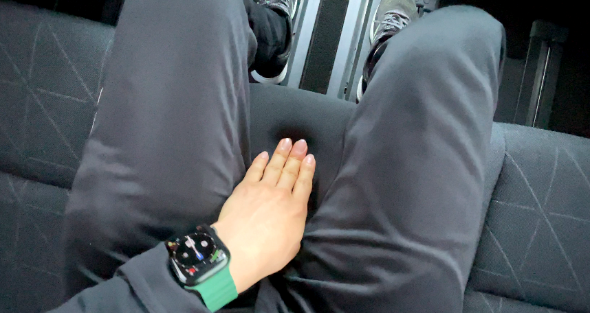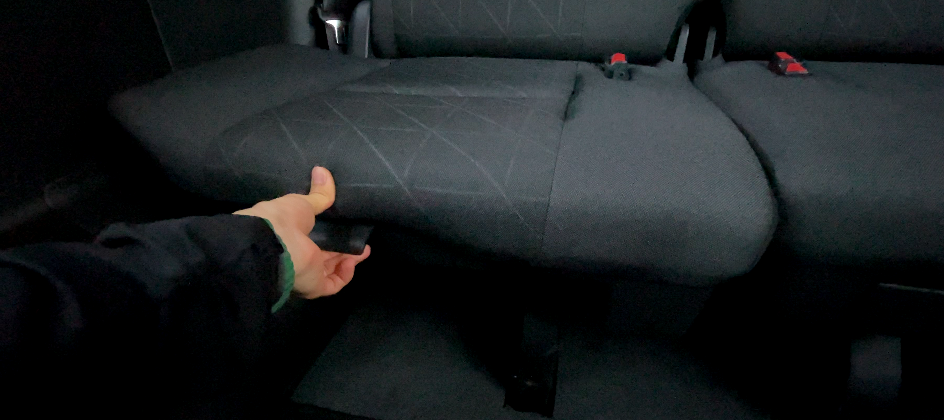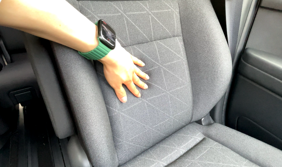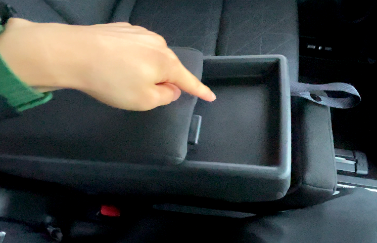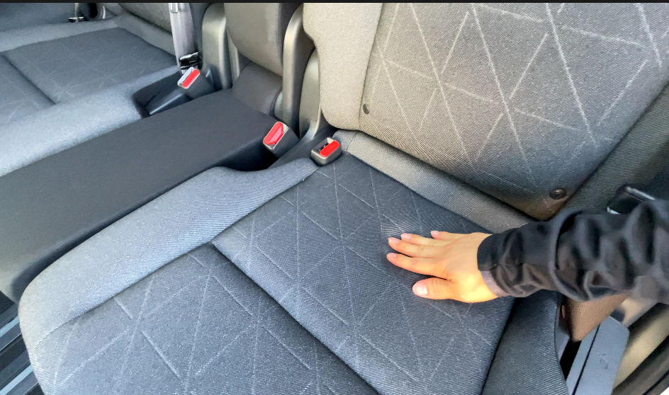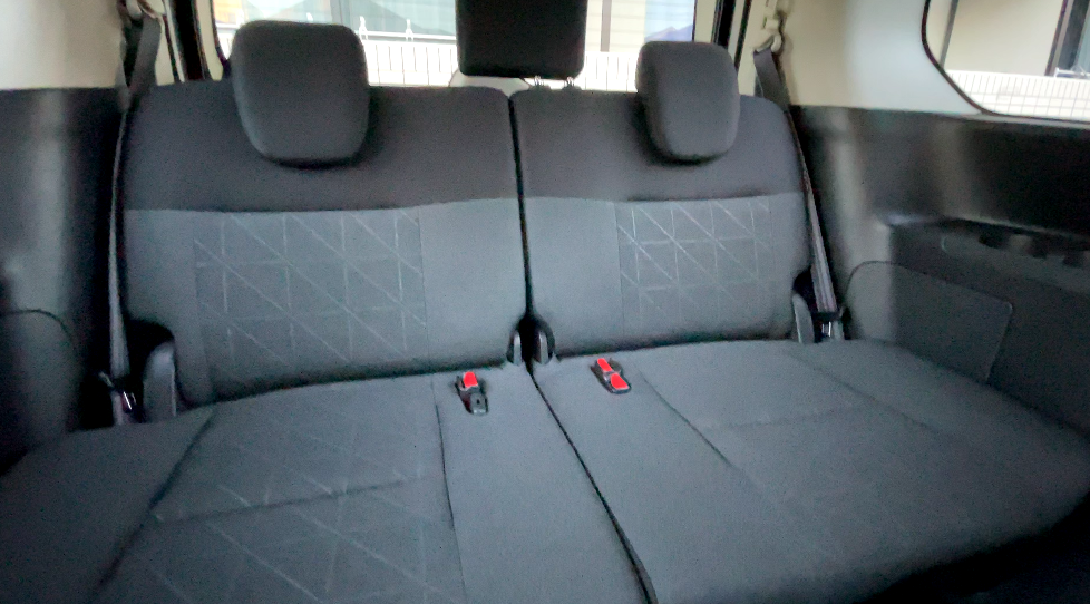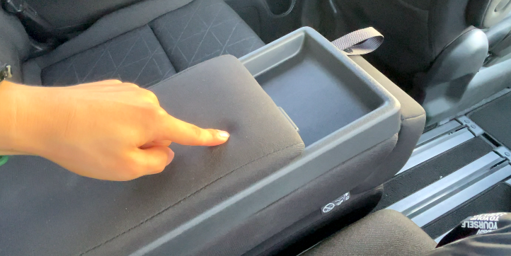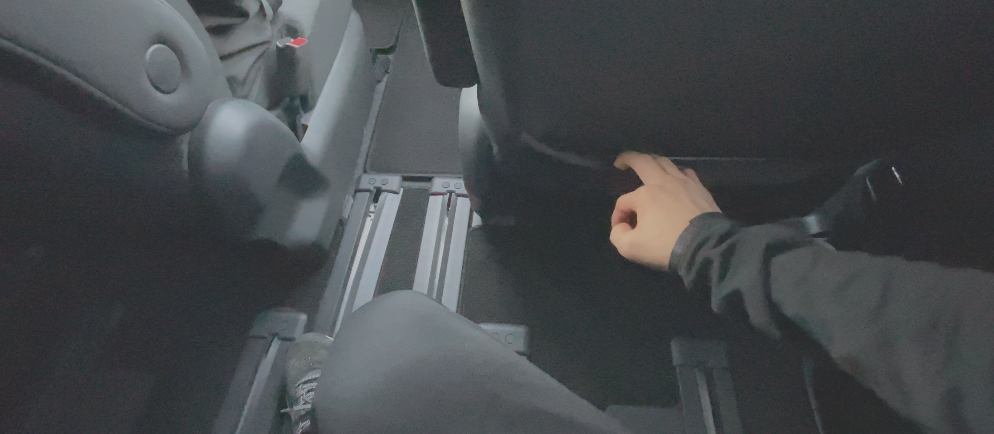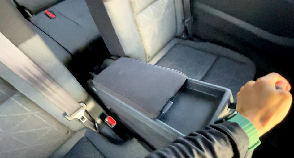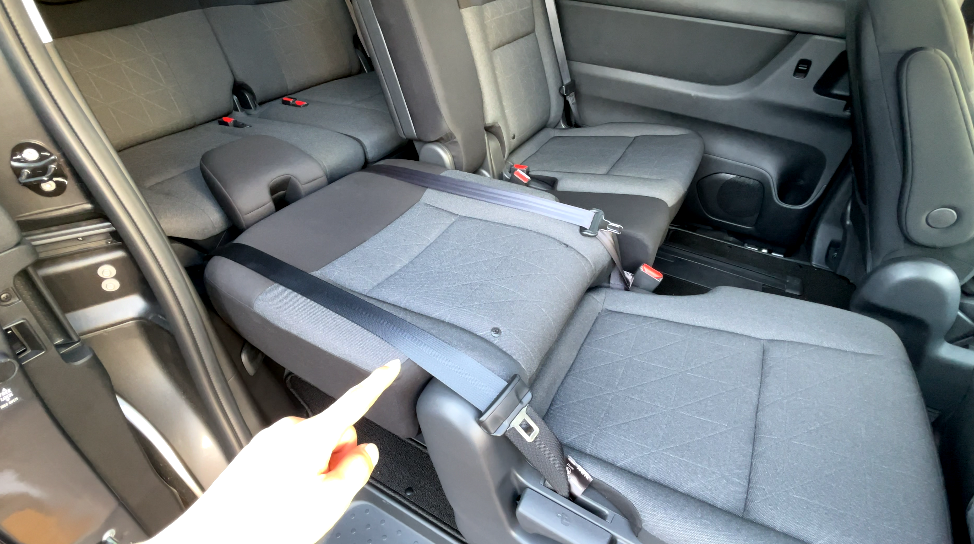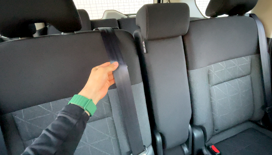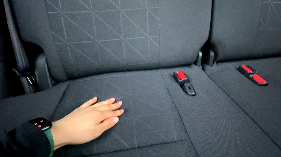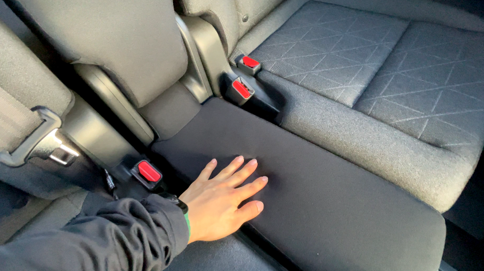 両側のシートベルトの金具が太ももの裏に当たるため、長時間座るのには向いていません