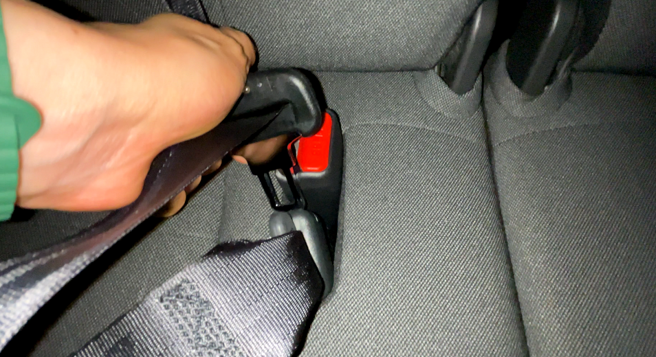 シートベルトを外す際は、隙間に金具を差し込んで外す必要があります