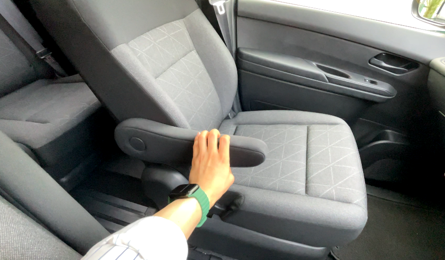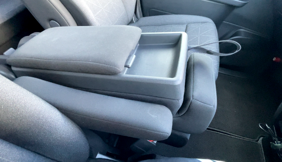 運転席と助手席にそれぞれファブリック素材のアームレストが用意されています(細めなので中央がウォークスルーになってます)