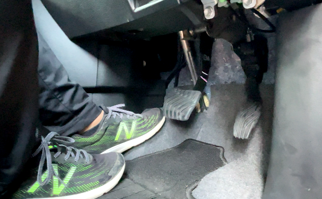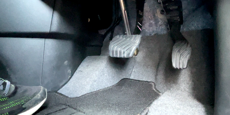 左側も同様に外側にペダルがあり、前に動かすことが可能