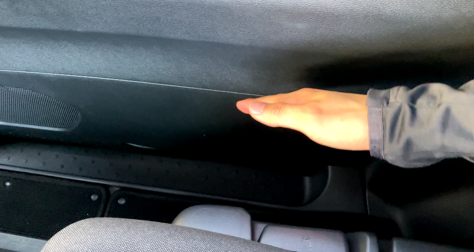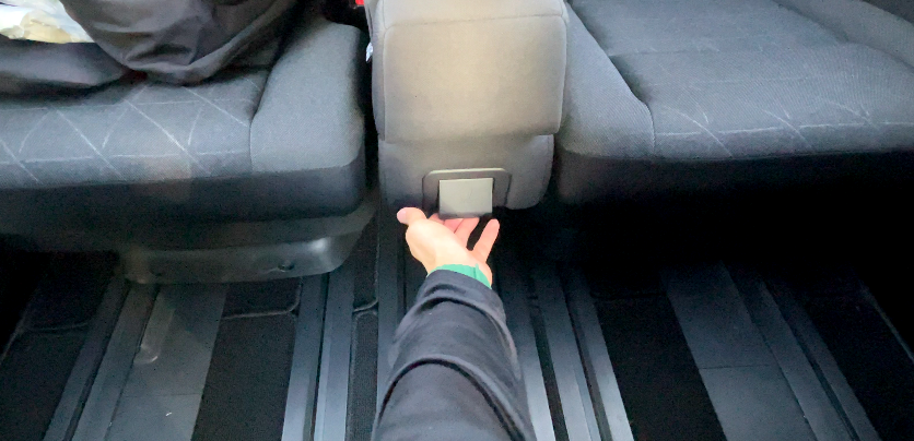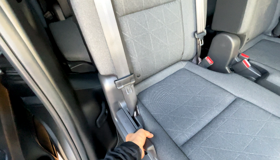 2列目シートの右側にあるペダルを踏むことで、シートを前に出すことが可能
