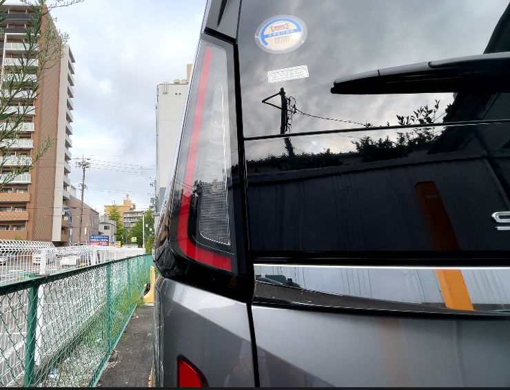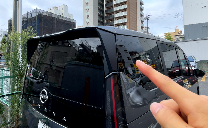 リアガラスとボディパネルの間がピアノブラックで、リアガラスが大きく見えるデザイン