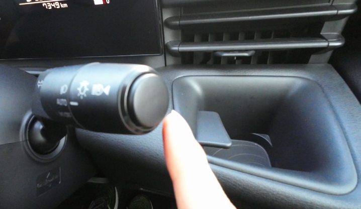 ライトはオートライトなので、暗い駐車場などでオフにしたい場合は、スイッチを手前側に回すことでオフにすることが可能