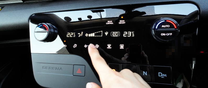エアコンパネルは物理ボタンとタッチパネルの操作