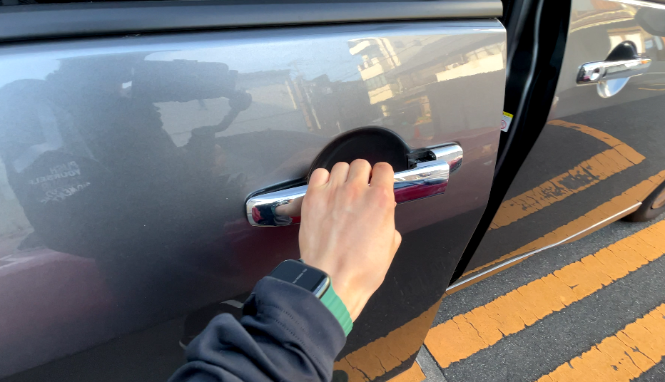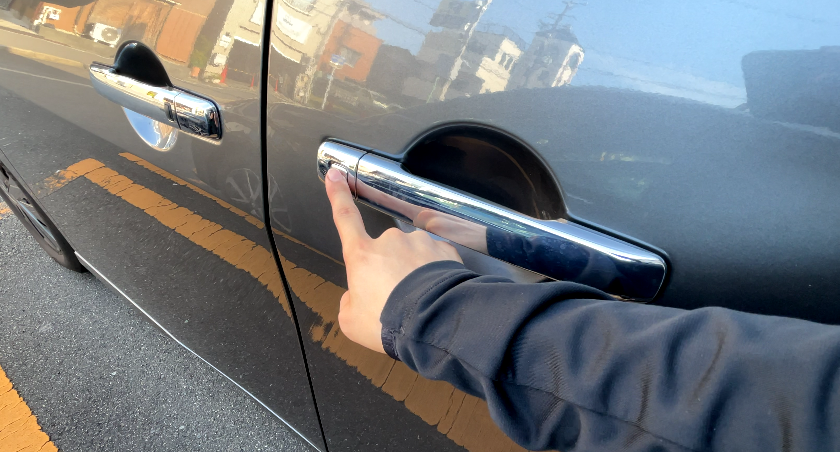 ドアハンドルの横にあるスイッチを押すことでも鍵の開閉が可能