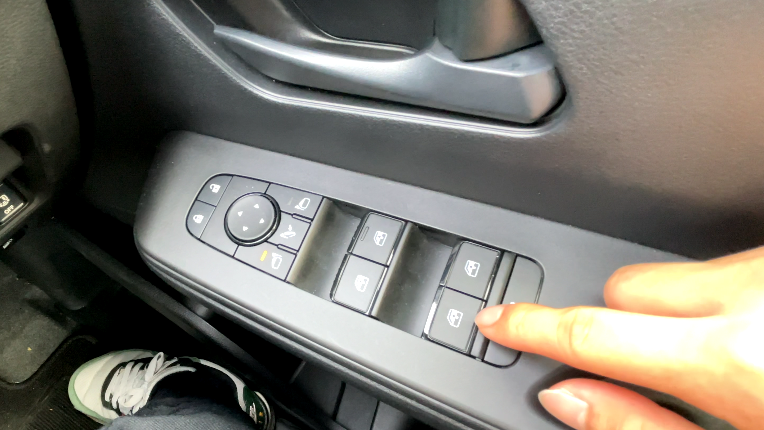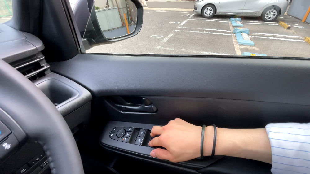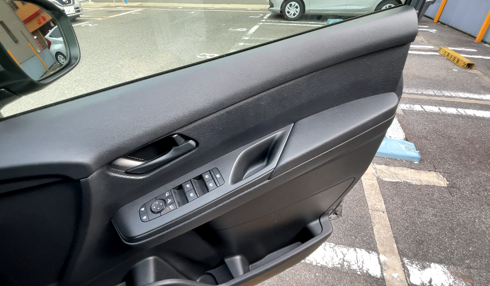 スイッチ類は、窓スイッチの端やサイドミラー調節ボタンの外側がピアノブラックになっています