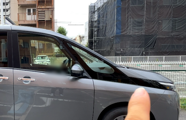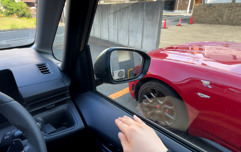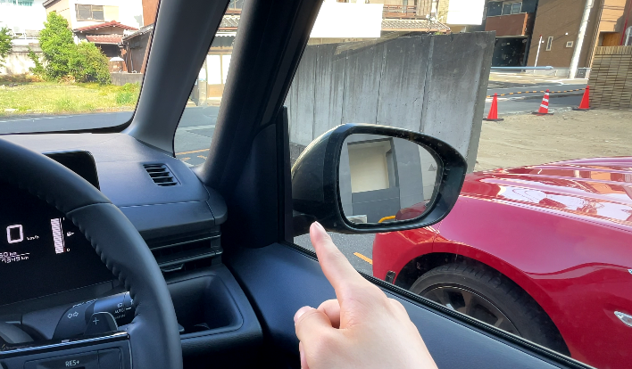 運転席側:鏡のみの装備で、外側はメッシュ素材